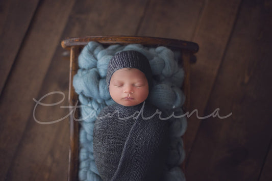Antique Cradle with Blue Bump Blanket and Cotton Newborn Digital Backdrop