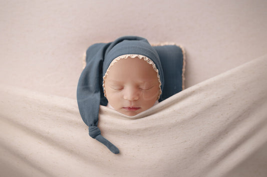 Baby Under Covers with Blue Sleepy Hat and Pillow PNG Newborn Digital Backdrop