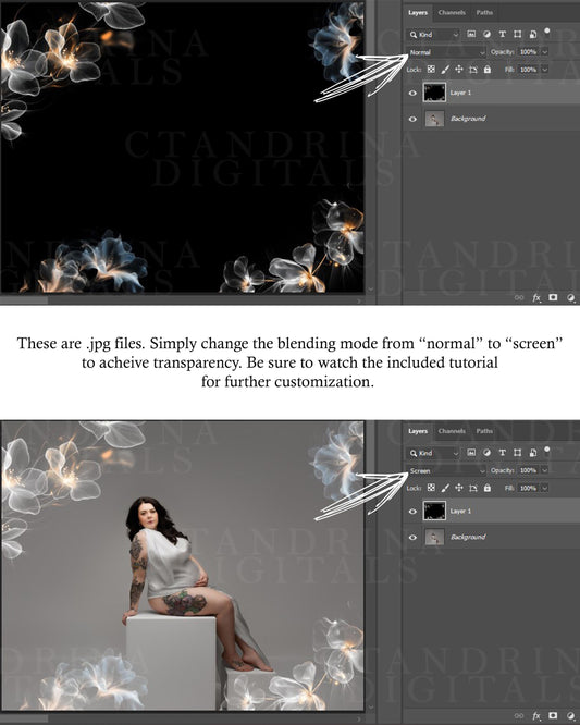 Glowing Flower Digital Backdrop Overlays