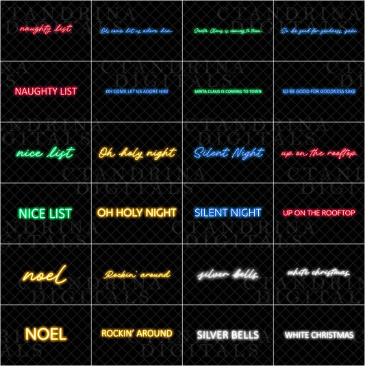 Neon Christmas Signs | Glowing Holiday Overlays for Photoshop (Digital Download)