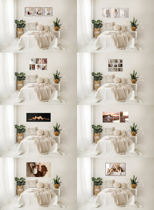 Boho Themed Bedroom Photo Wall Mockups - Set of 8