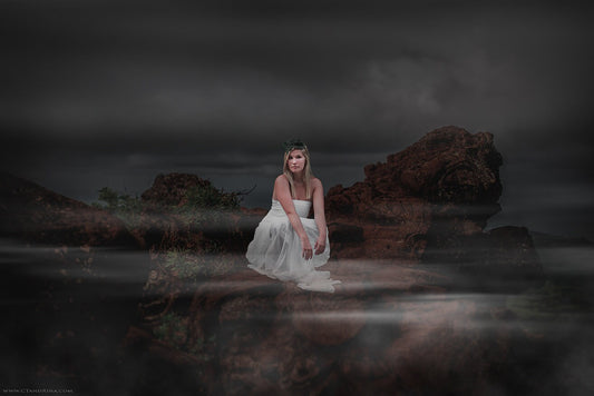 Dark Cliff with Fog Digital Backdrop