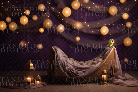 Baby Under Covers with Tulips Newborn Digital Backdrop