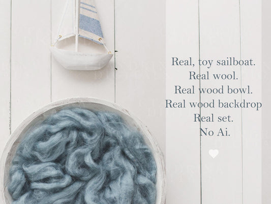 Blue Flokati Potato Pose Newborn Digital Backdrop