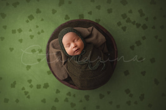 Green Leaves with Wooden Box Newborn Digital Backdrop