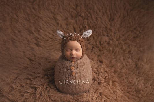 Brown Flokati Potato Pose Newborn Digital Backdrop