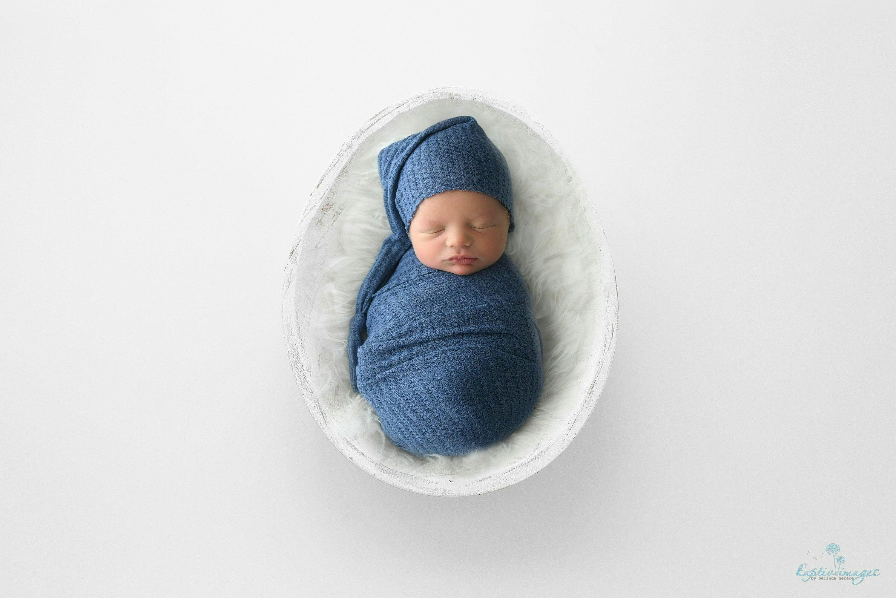 Easter Newborn Background for Photoshop with White Wood Carved Bowl and White Wool Fluff